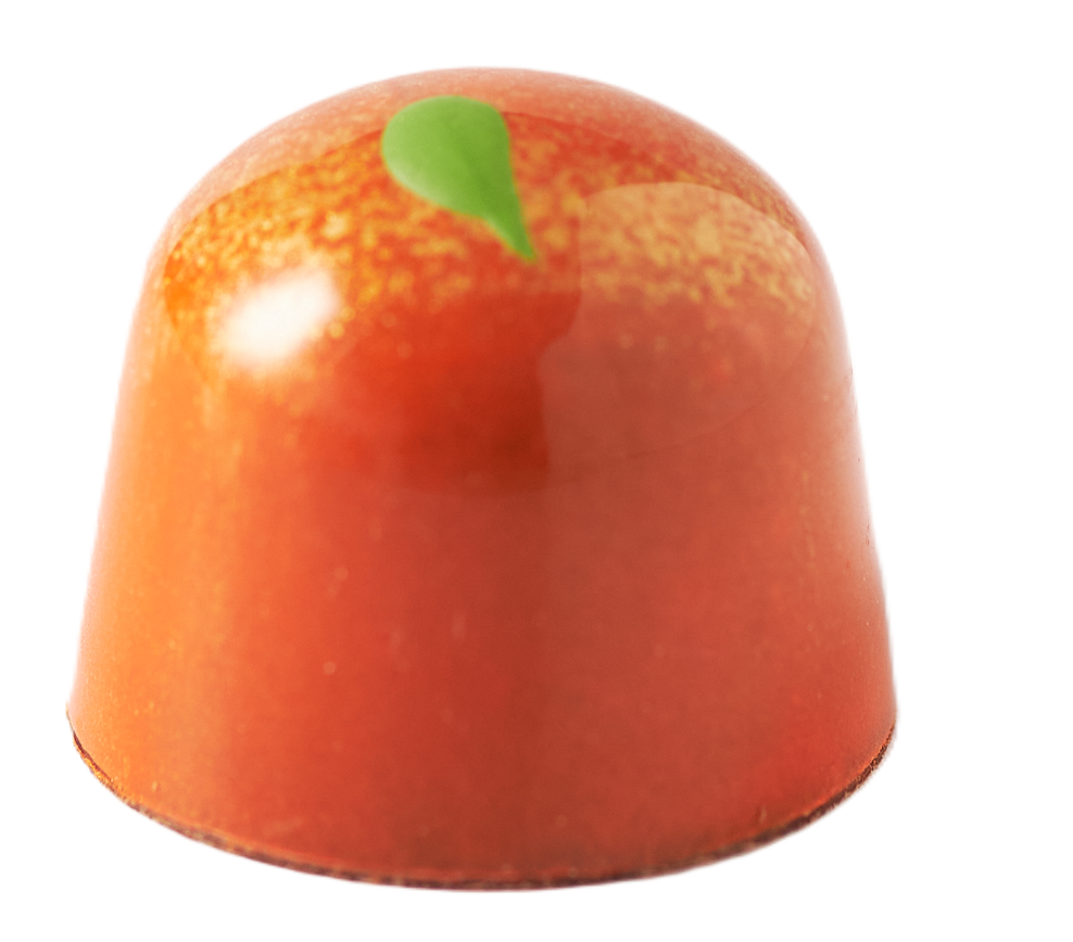 Delicious dark chocolate shell with a vibrant orange jelly layer, filled with a rich dark chocolate ganache infused with Grand Marnier and fresh orange zest.